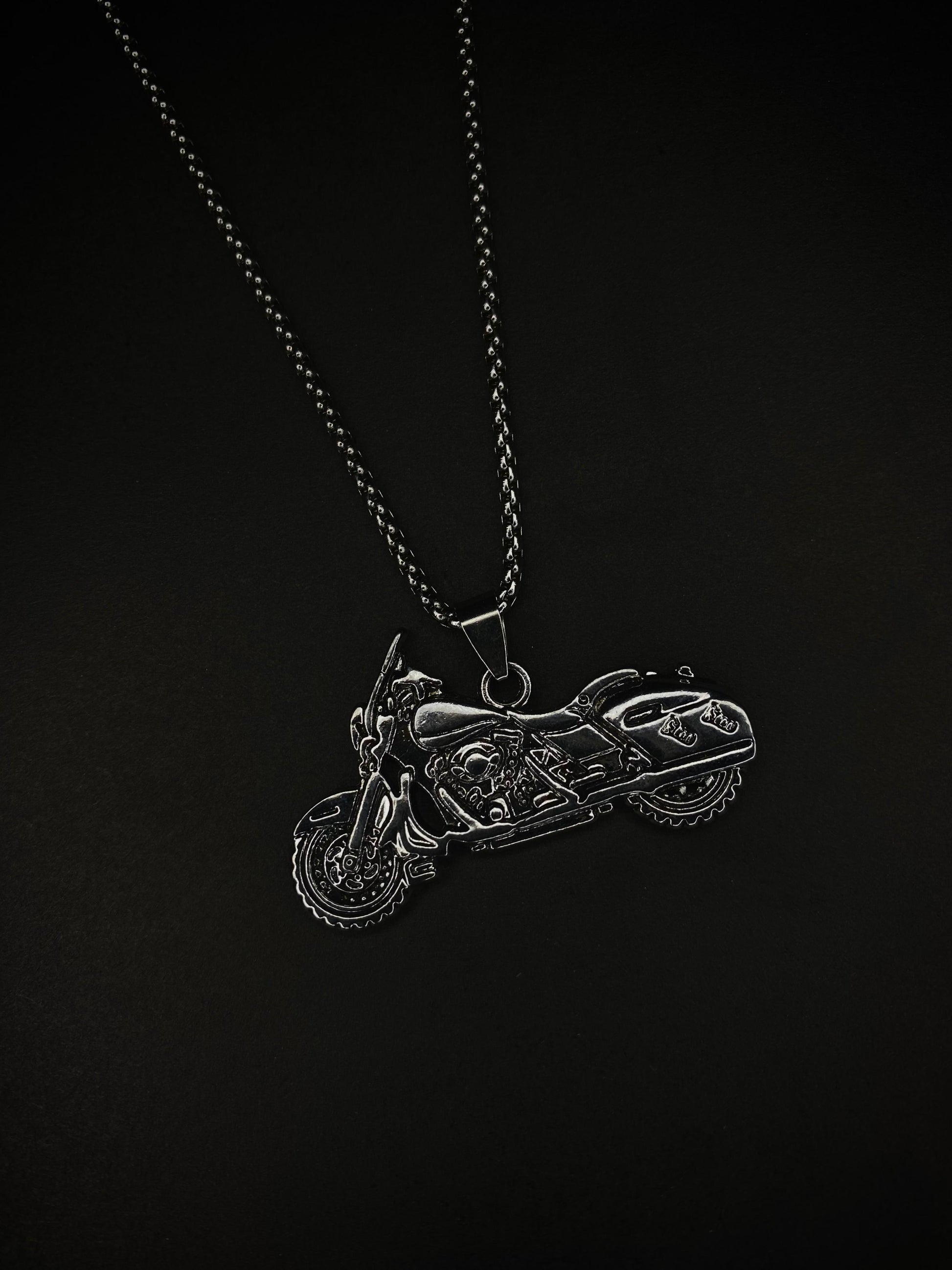Design: Intricate motorcycle pendant – bold & stylish