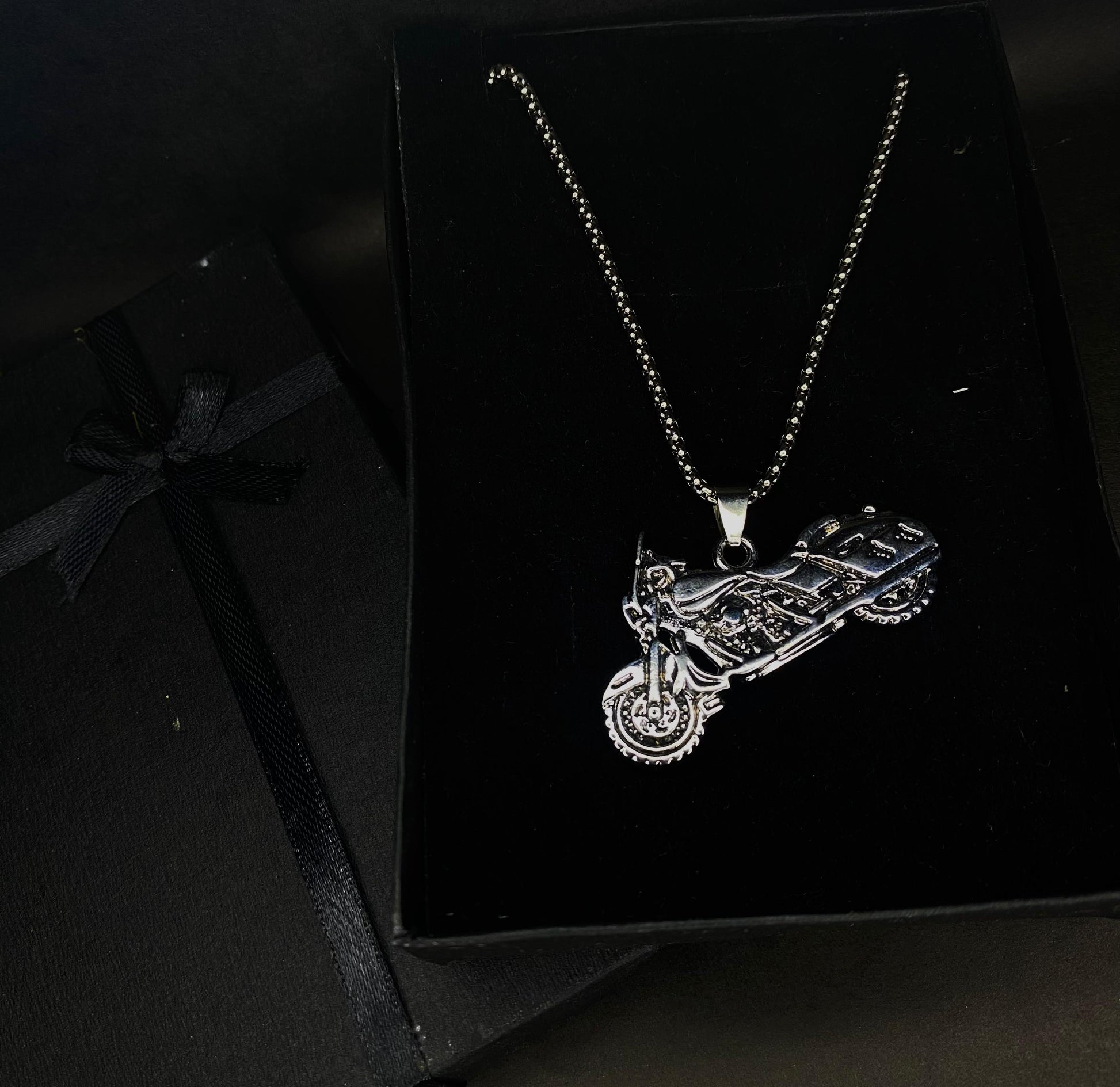 Show off your passion for the road with the Rider Bike Pendant Necklace. Designed for true biking enthusiasts, this pendant features a finely detailed motorcycle design that symbolizes freedom, adventure, and power. Crafted from premium stainless steel, it’s built to resist rust, tarnish, and fading—perfect for everyday wear. Paired with a durable chain, it makes a bold statement whether you’re riding or relaxing.