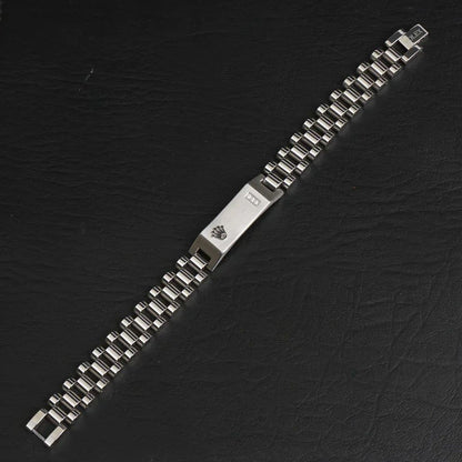 "Add a touch of luxury to your style with the Rolex Style Bracelet. Inspired by the classic watch design, this bracelet combines elegance and strength — perfect for those who love timeless fashion.Original branding of ROLEX on top and on the Lock"
