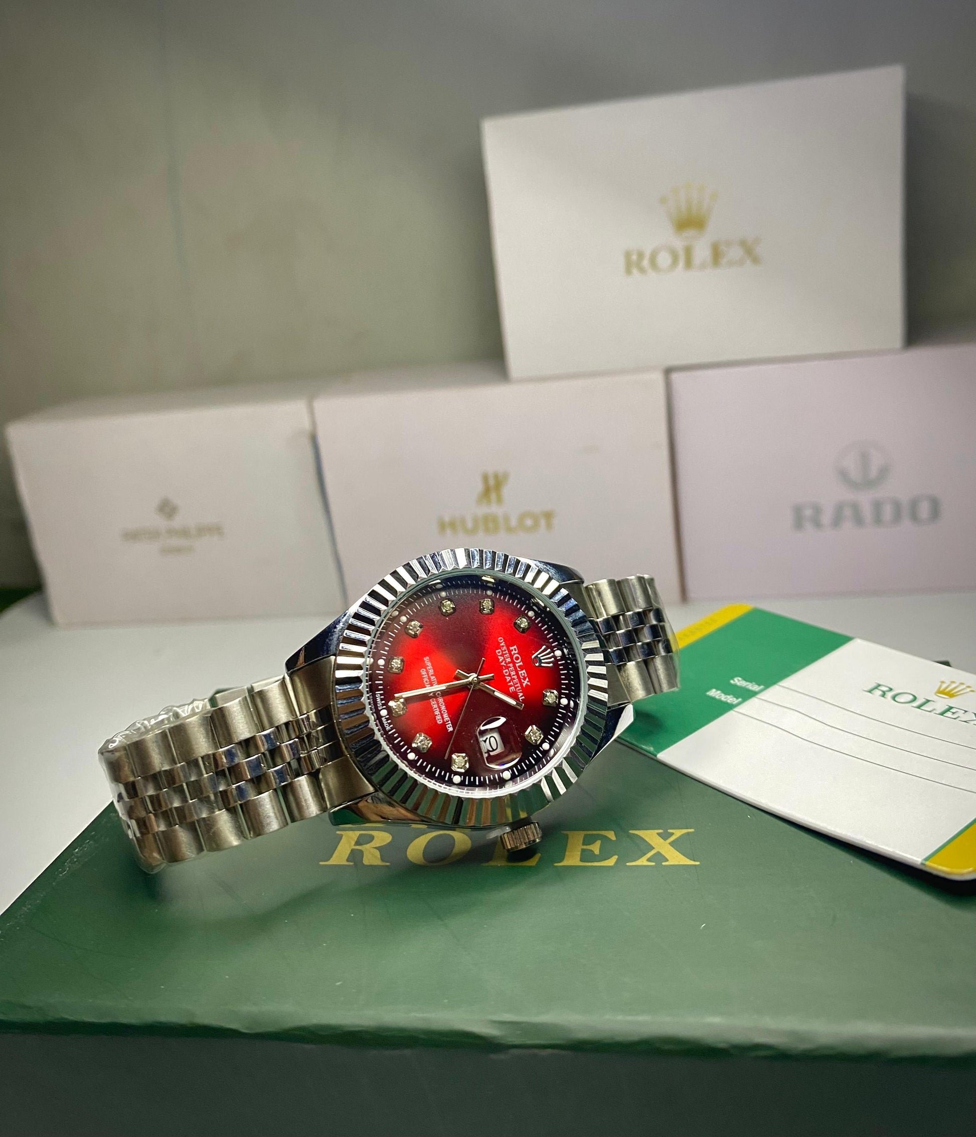 Make a bold statement with the Rolex Datejust RX featuring a striking red dial. Crafted with timeless precision, this watch combines Rolex’s legendary craftsmanship with a modern, vibrant touch. The radiant red face contrasts beautifully with its sleek case and classic bracelet, making it perfect for those who value elegance with a daring edge. A true symbol of sophistication and prestige, designed to stand out on every occasion.